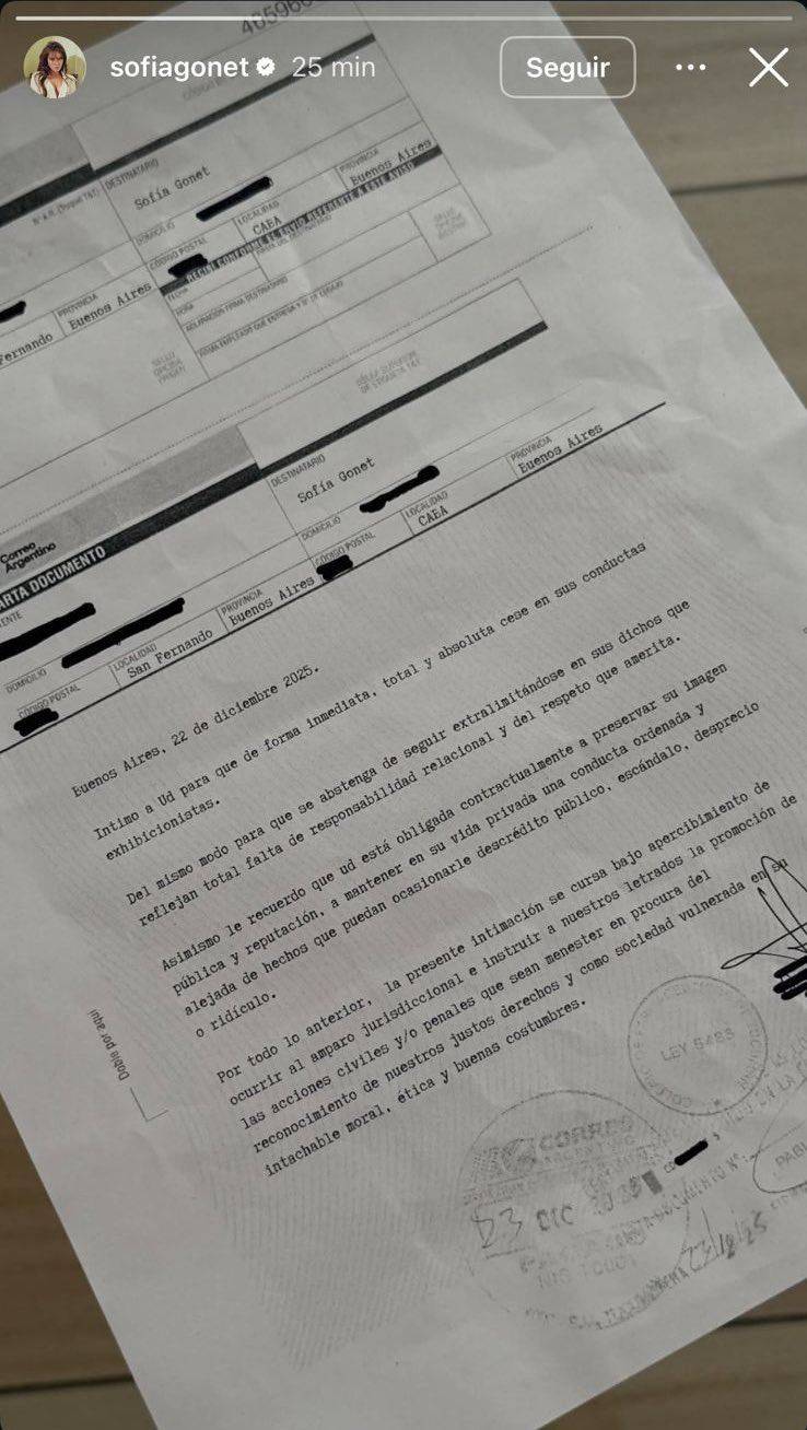 Para finalizar, el mensaje dice que "la intimación se cursa bajo apercibimiento". Por lo cual, si continúa comportándose de manera indebida, la influencer deberá pagar una multa.