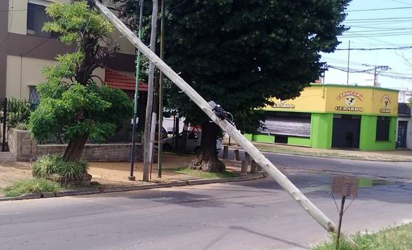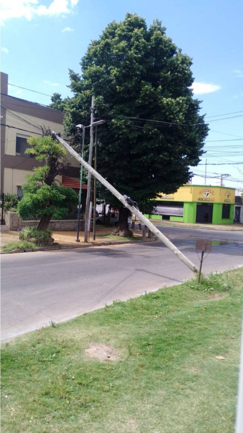 Como se puede ver en las imágenes, el pesado poste se encuentra sostenido por cables, atravesado sobre el medio de la calle y de vereda a vereda. Los frentistas manifiestan su preocupación ante el derrumbe y posibles accidentes.