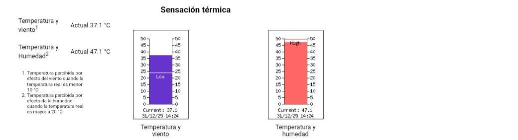 En una imagen que publicó el meteorólogo local Juan Ayoroa, la estación meteorológica ubicada en el Bosque marcaba una sensación térmica de 47.1°C a las 15 horas.