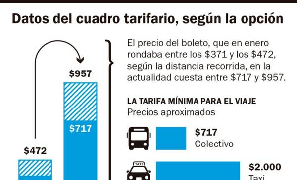 El cálculo corresponde a 22 días hábiles de trabajo (44 viajes ida y vuelta) para el boleto mínimo de 0 a 3 kilómetros, que hoy cuesta $717, y para el máximo de más de 27 kilómetros, que alcanza los $957. Ahora, sin el descuento por validar la tarjeta, el gasto mensual se eleva a entre $50.000 y $67.000, respectivamente.
