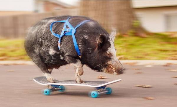 Norbert, el cerdo patinador, ganó el apodo Tony Pork en honor al skater Tony Hawk