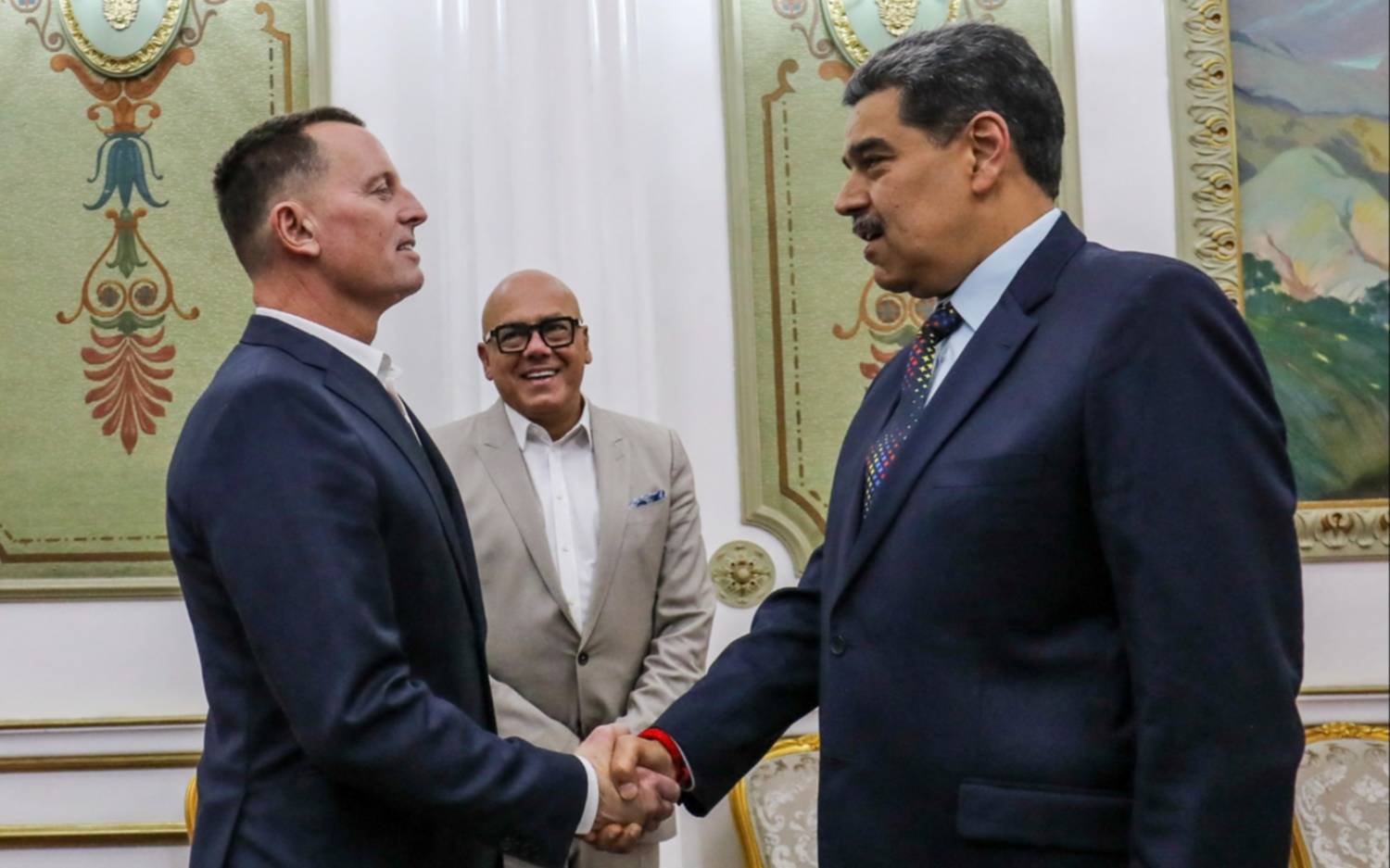 La televisión estatal transmitió imágenes del encuentro privado entre Maduro y el enviado Richard Grenell en el Palacio Presidencial de Miraflores.