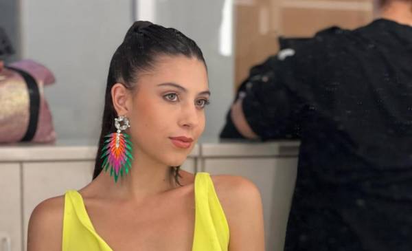 Para poner énfasis en el rostro, con cabello recogido, estos importantes aros dan brillo y color complementando un maxi dress todos de la colección de Benito Fernández / IG @benitofernandez