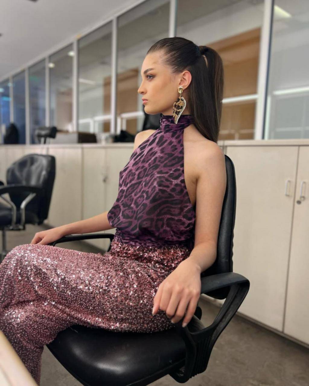 Los aros grandes lucen mejor con el cabello recogido. Animal print en contraste de colores y texturas, by Benito Fernández / IG @benitofernandez