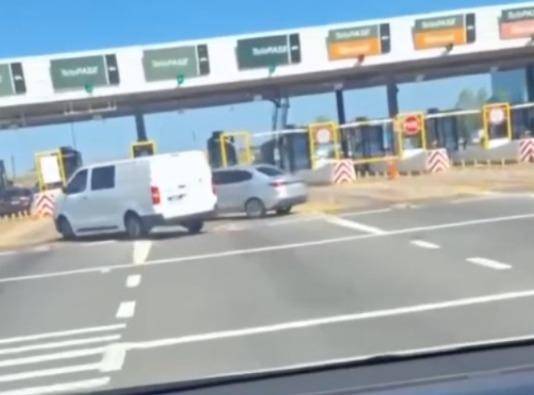 En el video tomado por Aubasa y otro conductor puede apreciarse a un utilitario blanco y un auto gris en maniobras de sobre paso, aceleración y freno, y cambios repentinos de carril. En particular, al llegar al peaje, donde se determinó que no cumplieron con el pago.