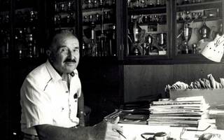 Ernesto Sábato con la camiseta de Estudiantes en la cancha de 57 y 1