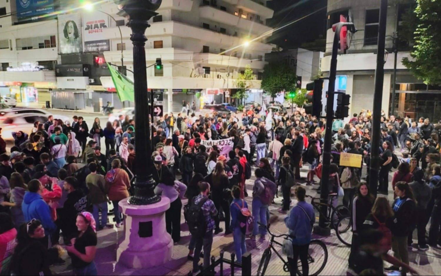 Un grupo de manifestantes, en su mayoría estudiantes y militantes políticos, se congregó anoche en la esquina de 7 y 50 en rechazo a la represión y los incidentes que tuvieron lugar en las afueras del Congreso durante la marcha de jubilados.