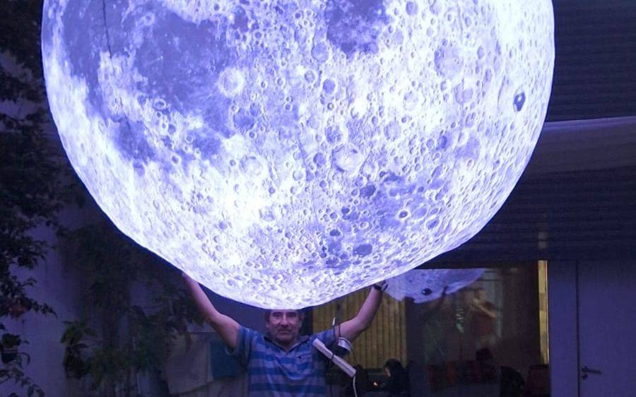 El reconocido artista platense creador de inflables gigantes, Alejandro Mañanes, sorprendió este jueves con otra obra: una luna móvil.