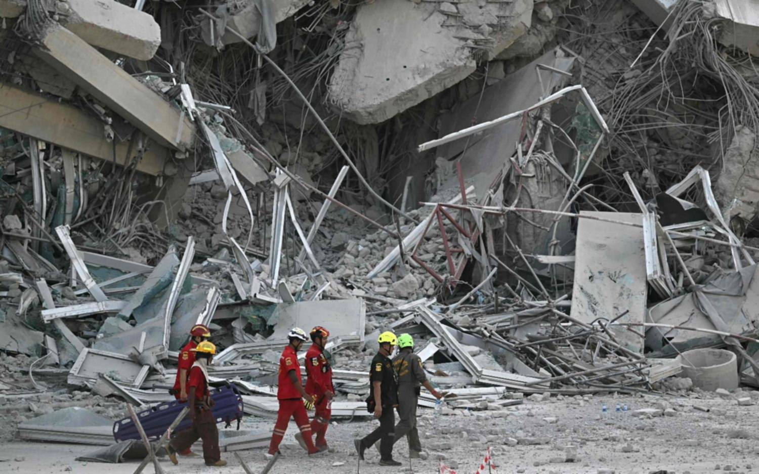 En Bangkok, un trabajador de la construcción murió cuando los escombros del edificio que se venía abajo impactaron su camión, y otro fue aplastado por restos que caían, según informó a la prensa el rescatista Songwut Wangpon. Otras siete personas fueron encontradas con vida en el lugar, pero un número indeterminado permanece bajo los escombros, que actualmente son demasiado inestables para que los equipos de emergencia comiencen a buscar, añadió.