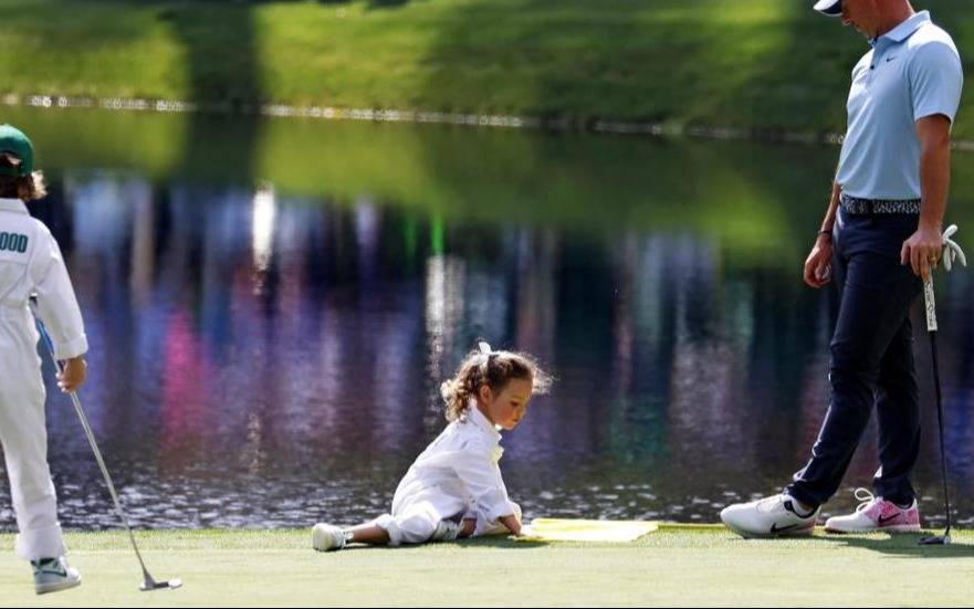 La familia McIlroy hizo una aparición memorable en Augusta National, con Poppy, vestida con un atuendo oficial, mostrando su destreza en el green. Acompañada por su madre, Erica Stoll, y su padre, Rory, la niña tomó un putt en el hoyo 9, demostrando una sorprendente confianza al golpear la bola con una sola mano. La pelota avanzó hacia el hoyo con una precisión asombrosa, lo que provocó una ovación de la multitud y celebraciones por parte de los jugadores, incluido Shane Lowry, quien levantó las manos en señal de alegría.