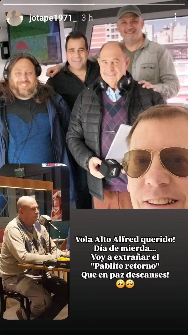 Juan Pablo Trovatto, operador de La Redonda, lamentó: "Volá alto Alfred querido. Día de mierda. Voy a extrañar el 'Pablito, el retorno'. Que descanses en paz". Se sumó Natalia Villegas, locutora: "Alfred querido, vuela alto. La Redonda está de luto".