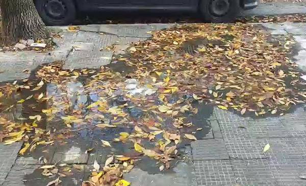 “Ya se hicieron varios reclamos”, indicaron los frentistas. Como se puede observar en las imágenes, el agua sale a borbotones y, con la llegada del otoño, se vuelve un peligro al colmarse de hojas que podría causar un accidente.