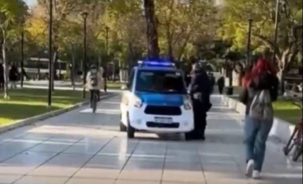 Las imágenes se viralizaron en redes sociales y fueron filmadas por jóvenes que se encontraban en la plaza. El personal policial había descendido del pequeño automóvil para detener a un joven “que estaba fumando”, señalaron testigos.
