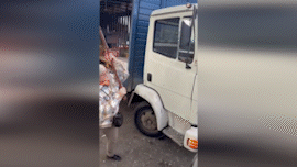 La conductora rompió el parabrisas del camión, la ventana lateral y uno de los espejos retrovisores. También dañó parte de la mercadería -latas de cerveza- que transportaba el chofer. Todo sucedió mientras un transeúnte filmaba toda la secuencia que a posteriori se hizo viral en las redes sociales.