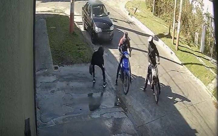 Una cámara de seguridad captó el asalto al joven. Según se puede ver, los delincuentes lo amenazaron con arma blanca.
