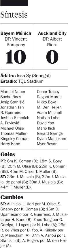 Bayern Múnich humilló al Auckland City de Nueva Zelanda 10-0 en la primera fecha del Grupo C del Mundial de Clubes, en el Estadio de Cincinnati, A su vez, cabe mencionar que es la misma zona que integra Boca.