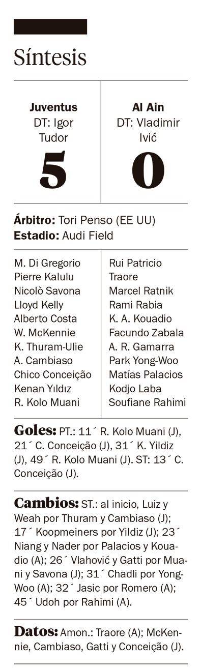 En su estreno en el Mundial de Clubes, Juventus aplastó 5-0 al Al Ain de Émiratos Árabes Unidos y es uno de los punteros del Grupo G junto a Manchester City. Le bastó un tiempo a la Vecchia Signora para sentenciar el encuentro.
