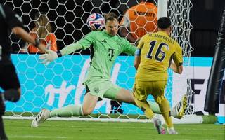 A los 21 minutos, Miguel Merentiel armó una jugada increíble ante la defensa alemana y definió ante Neuer con una definición exquisita.