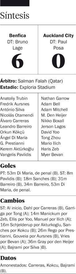De la mano de Ángel Di Maria, Benfica aplastó 6-0 a Auckland City por la segunda fecha del grupo C del Mundial de Clubes. El Fideo convirtió un doblete, además, Gianluca Prestianni y Nicolás Otamendi fueron titulares.