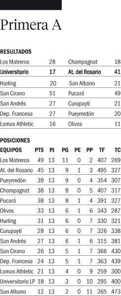 Universitario cerró la primera ronda del torneo de Primera A con una derrota contundente como local ante Atlético del Rosario, que lo superó 41-17, resultado que marcas en parte las diferencias entre un equipo y el otro. La U arrancó mal pero se puso a tiro en el final del primer tiempo.Plaza sólo ganaba por cinco puntos. Así siguió el partido hasta promediando el segundo tiempo cuando el ganador estableció superioridad y lo quebró. En la próxima fecha las Panteras jugarán contra Curupaytí, otra vez como visitante porque le resta una última fecha de suspensión.
