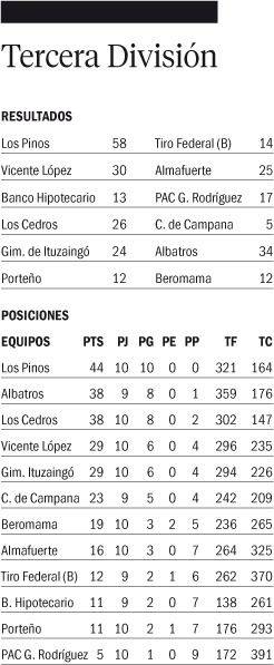 En tanto que por el torneo de Tercera Albatros logró un importante triunfo como visitante 34-24 sobre Gimnasia de Ituzaingó, resultado que se plasmó en los últimos minutos. Gran parte del partido lo tuvo en desventaja al Tricolor que está segundo a seis puntos del único líder pero con un partido menos jugado.