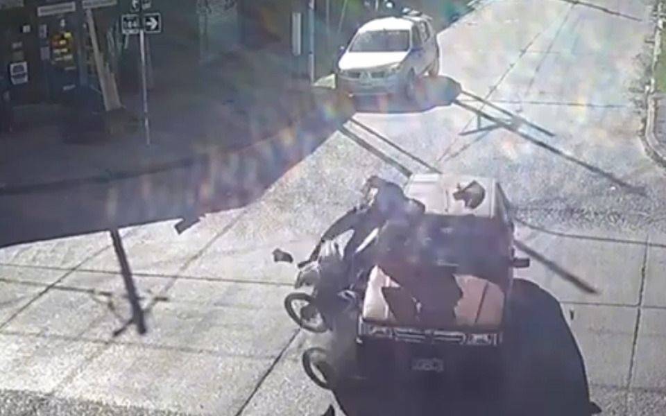 El brutal accidente fue registrado por las cámaras de vigilancia del Centro Operativo de Monitoreo de Berisso. A través de las imágenes, se evidenció como la moto Mondial 110 cilindradas y un Fiat Duna.