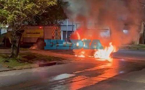 Según fuentes que accedió EL DIA, contaron que los vecinos dieron alerta a los bomberos por un vehículo cuya marca no pudo conocerse que se incendiaba sobre la cinta asfáltica y provocó la destrucción total del mismo en la zona.