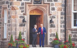 Trump y Starmer también discutieron la implementación del acuerdo comercial entre Reino Unido y Estados Unidos que fue firmado el 8 de mayo y que redujo los aranceles para ciertas exportaciones británicas, pero que aún no ha entrado en vigor. El estadounidense recibió a Starmer y a su esposa Victoria bajo estricta seguridad en Turnberry, donde había pasado dos días jugando al golf desde que llegó a Escocia el viernes por la noche para una visita de cinco días.