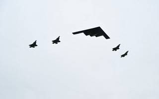 Fotos | Un bombardero B-2 Spirit y cuatro F-35 alineados sobrevolaron a Trump y Putin