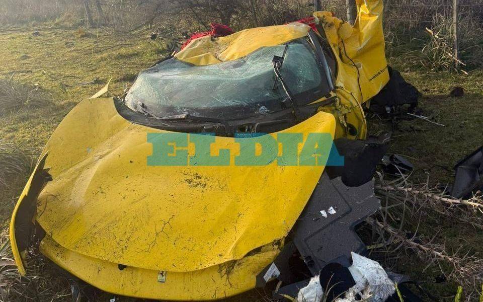 Según fuentes policiales que accedió EL DIA, la Ferrari despistó por razones que se tratan de establecer, a gran velocidad, impactando con un poste y quedando alojado en el interior de un campo, a casi 40 metros de la traza.