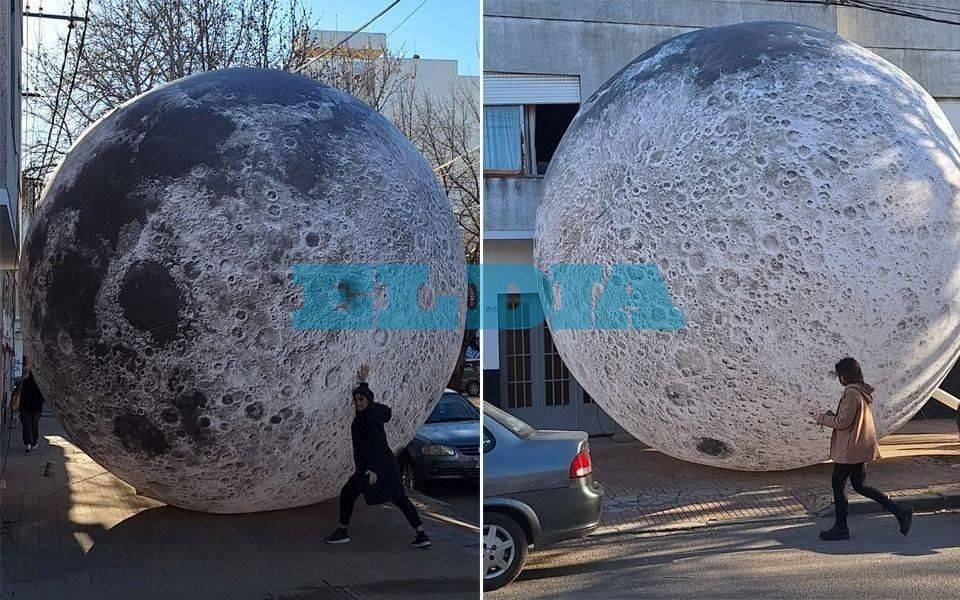 La imagen de una luna enorme apoyada sobre una vereda en La Plata despertó la curiosidad en redes sociales y las fotos se hicieron virales.