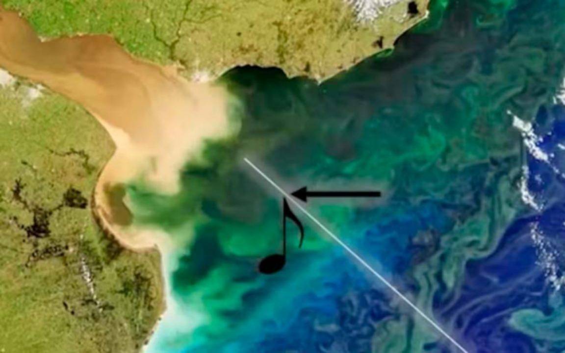 Se trata de una imagen obtenida con el satélite Aqua del portal NASA Earthdata en 2015, a la cual se le aplicó un complejo sistema para traducir los colores del océano en notas musicales.