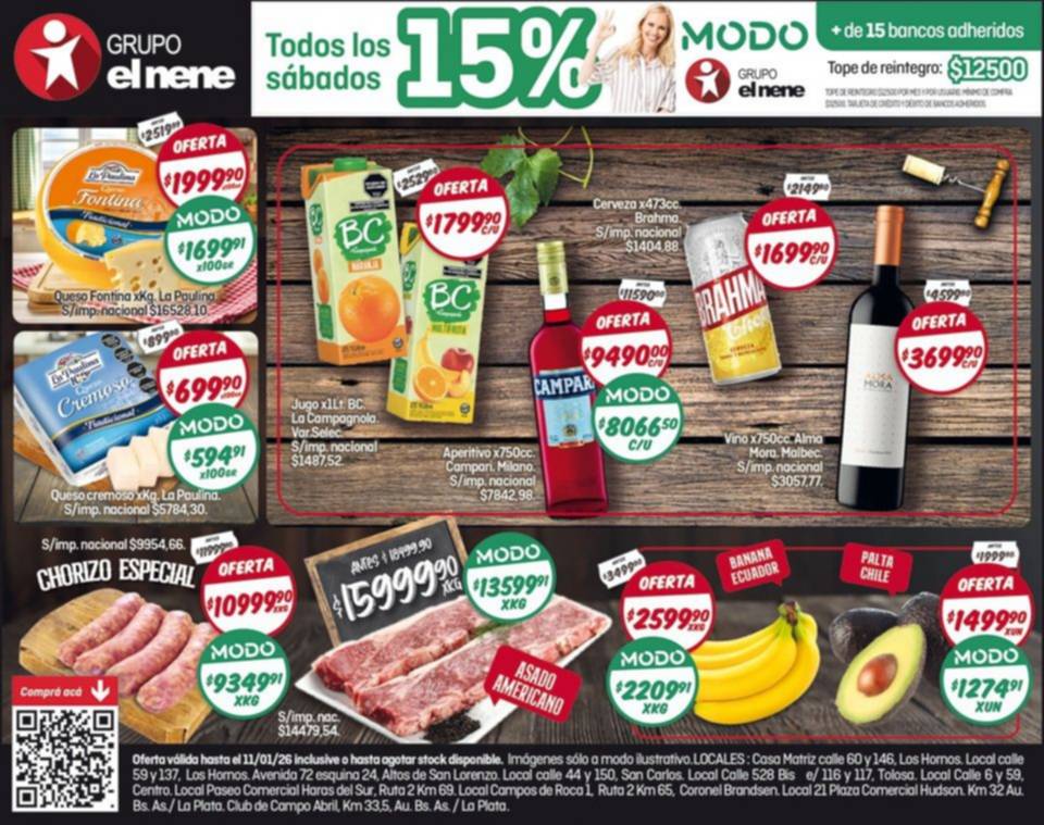 Visitá tu supermercado EL NENE más cercano en Los Hornos, Altos de San Lorenzo, San Carlos, Tolosa, La Plata, Brandsen y Hudson, y aprovechá los mejores precios del fin de semana.