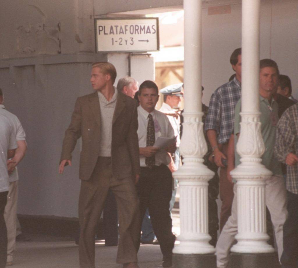Brad Pitt, en la estación de trenes de la plata, en el marco del rodaje de la película “Siete años en el Tíbet” / ARCHIVO
