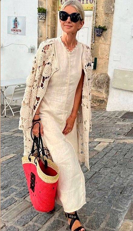 Los tejidos, tradicionalmente asociados al invierno, encuentran en el verano una nueva forma de expresión. Crochet, calados y puntos abiertos aparecen en tops, chalecos, remeras y vestidos livianos. Estas prendas aportan textura y un espíritu artesanal que conecta con lo natural y lo hecho a mano. Se usan superpuestas sobre bikinis, con pantalones sueltos o combinadas con denim para un contraste equilibrado. Los colores claros, los tonos tierra y los pasteles son los más elegidos, aunque también hay lugar para versiones más audaces en colores intensos.