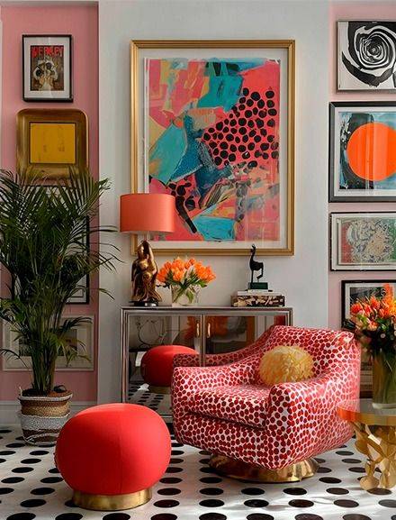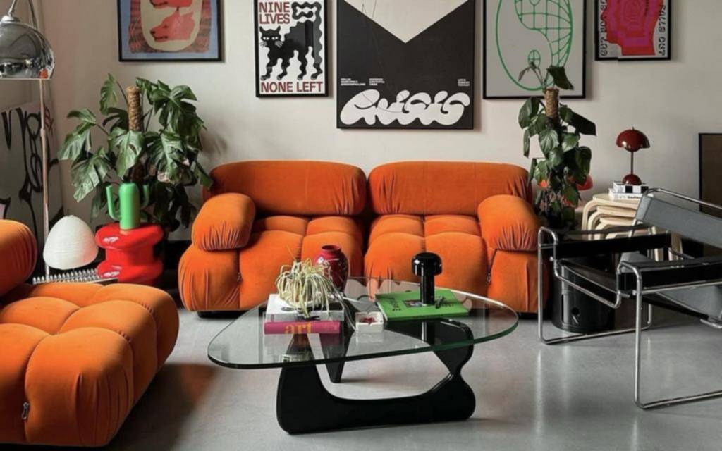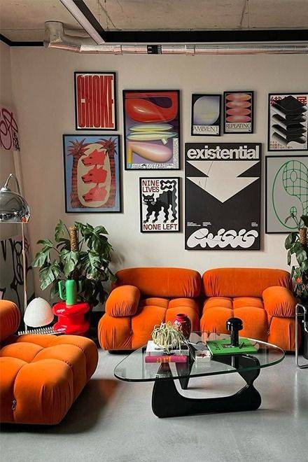 El color, por su parte, deja de ser un simple recurso para destacar una pared y pasa a ocupar un rol central en todo el espacio. Tonos saturados y vibrantes como naranjas encendidos, amarillos solares y verdes profundos se despliegan en muebles, alfombras y textiles, aportando energía y carácter. La paleta cromática se anima a contrastes fuertes y combinaciones inesperadas, con el objetivo de generar impacto emocional y personalidad propia.
