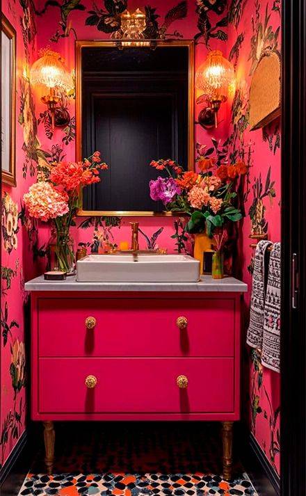 Las texturas y los patrones acompañan esta búsqueda de intensidad. Telas con efecto pictórico, florales de gran escala y motivos que se repiten y dialogan entre sí suman profundidad y riqueza visual. El espacio se construye por capas, invitando no solo a ser mirado sino también a ser vivido y tocado, con una sensación envolvente que se aleja de la frialdad.