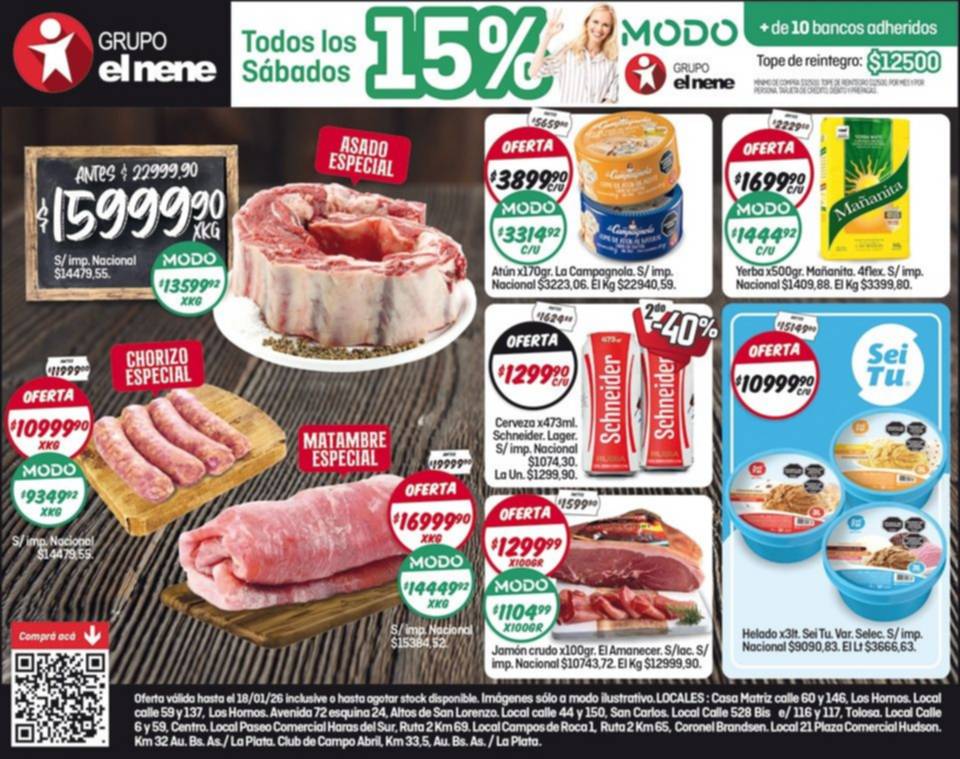 Visitá tu supermercado EL NENE más cercano en Los Hornos, Altos de San Lorenzo, San Carlos, Tolosa, La Plata, Brandsen y Hudson, y aprovechá los mejores precios del fin de semana.