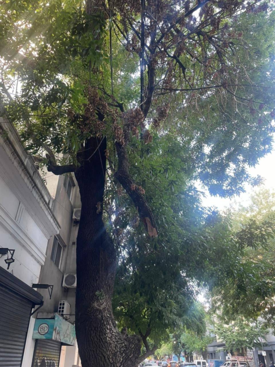 “Se va a caer y va a matar a alguien. No nos dan bolilla y el tronco tiene unos 20 cm de diámetro”, destacaron los frentistas.