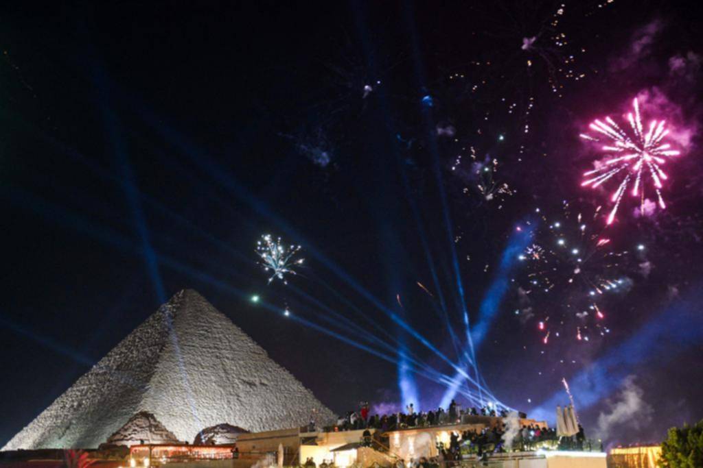 Fuegos artificiales iluminan el cielo sobre las pirámides de Giza / AFP