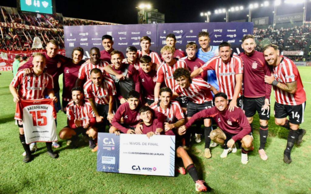 Estudiantes muestra el cheque tras haber accedido a los 16avos de final de la Copa Argentina / N. Braicovich