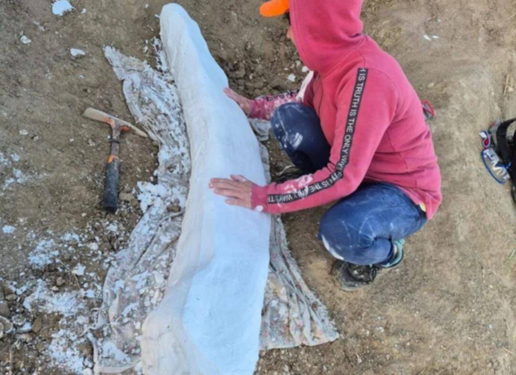 El fósil, de más de un metro y medio de largo y con una leve curvatura, apareció en sedimentos con una antigüedad estimada superior a los 100.000 años. Por su tamaño y estado de conservación, el ejemplar constituye un aporte significativo para el estudio de la megafauna pampeana que pobló la región durante la Era del Hielo.