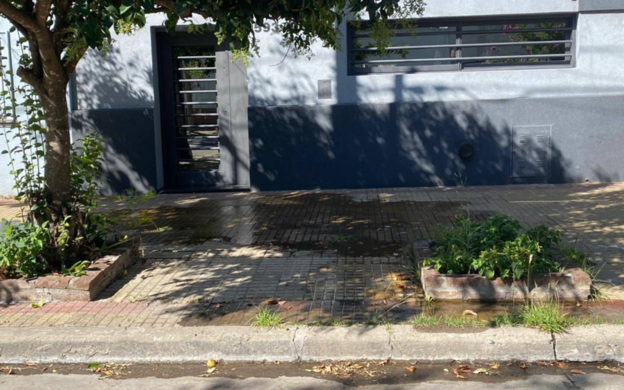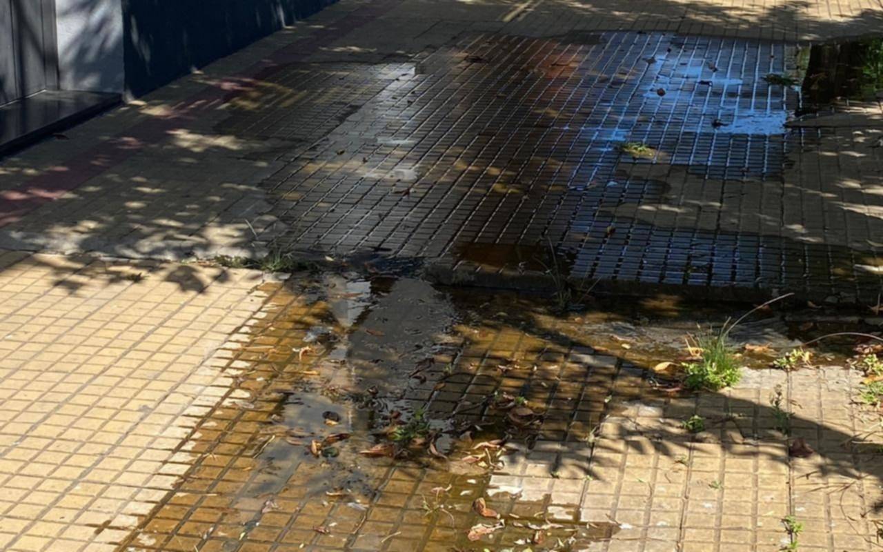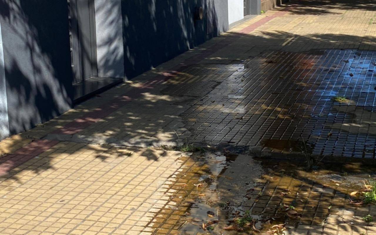 Los reclamos por esta pérdida comenzaron hace quince días pero “es de tiempo anterior”. La vereda queda inutilizable para quienes deben circular, siendo imposible de pasar para personas con movilidad reducida o adultos mayores.