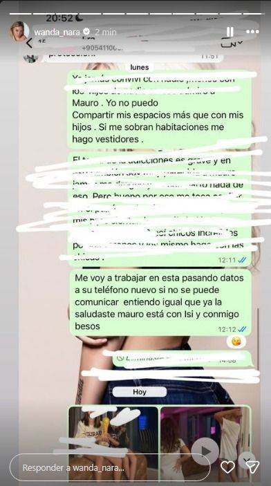 Sus palabras le dieron a Wanda Nara la oportunidad de revelar la verdad. A través de capturas de pantalla, la empresaria mostró que, efectivamente, mantiene un diálogo cordial con el padre de sus hijas e incluso le envía fotos de las niñas para mantener contacto.