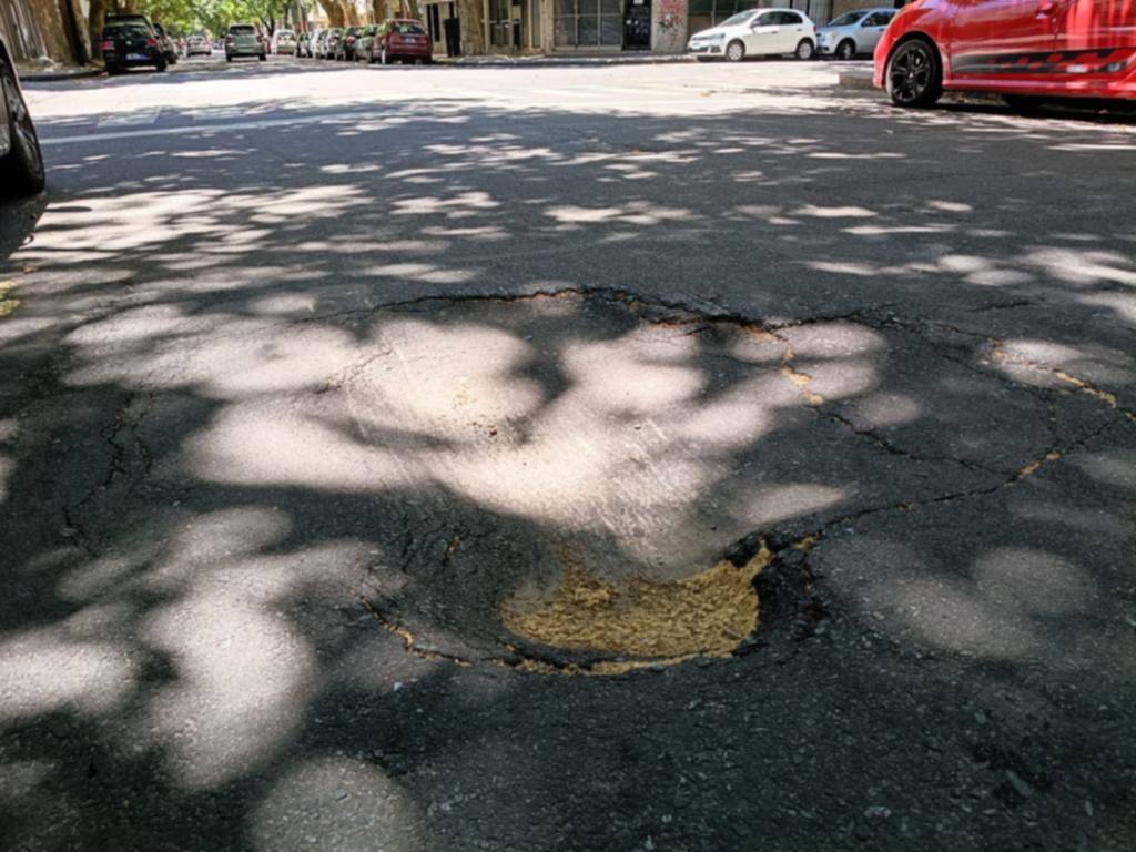 Un bache y el hundimiento del asfalto en medio de 56 entre 4 y la diagonal 79 preocupa a los vecinos de la Ciudad. Los frentistas temen por el cuidado de sus vehículos ya que según apuntaron en la cinta asfáltica “se notan las marcas de los autos que cayeron ahí”.