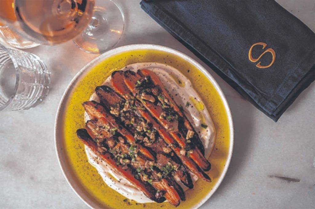 5Para el armado, disponer el labne en la base del plato, colocar las zanahorias calientes por encima y terminar con la gremolata. Servir de inmediato.