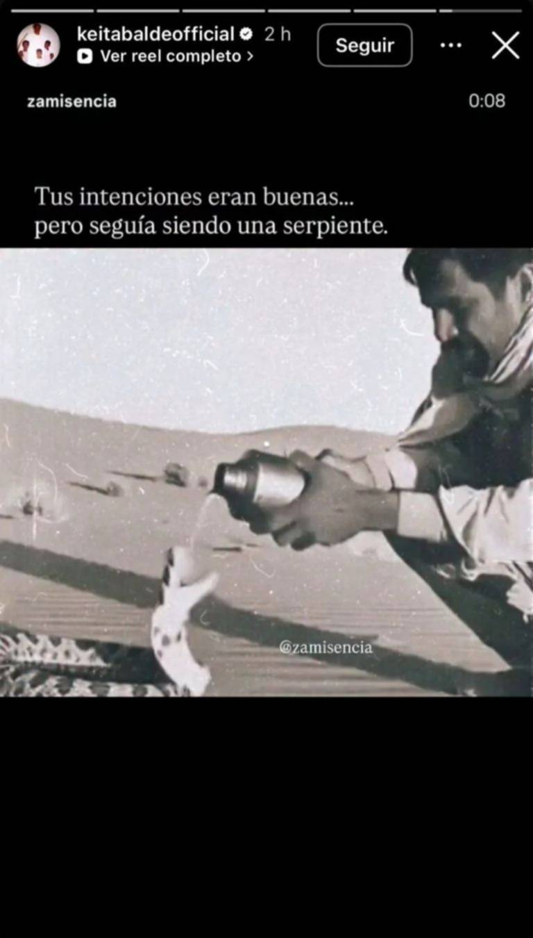 Por último, luego de la publicación de Simona, Keita Baldé reaccionó de manera contundente en sus redes sociales. A través de una imagen en el que un hombre le da agua a una serpiente y esta lo muerde, el futbolista escribió: "Tus intenciones eran buenas, pero seguía siendo una serpiente", dejando claro su punto de vista sobre la situación y generando un nuevo capítulo de polémica mediática alrededor de la pareja.