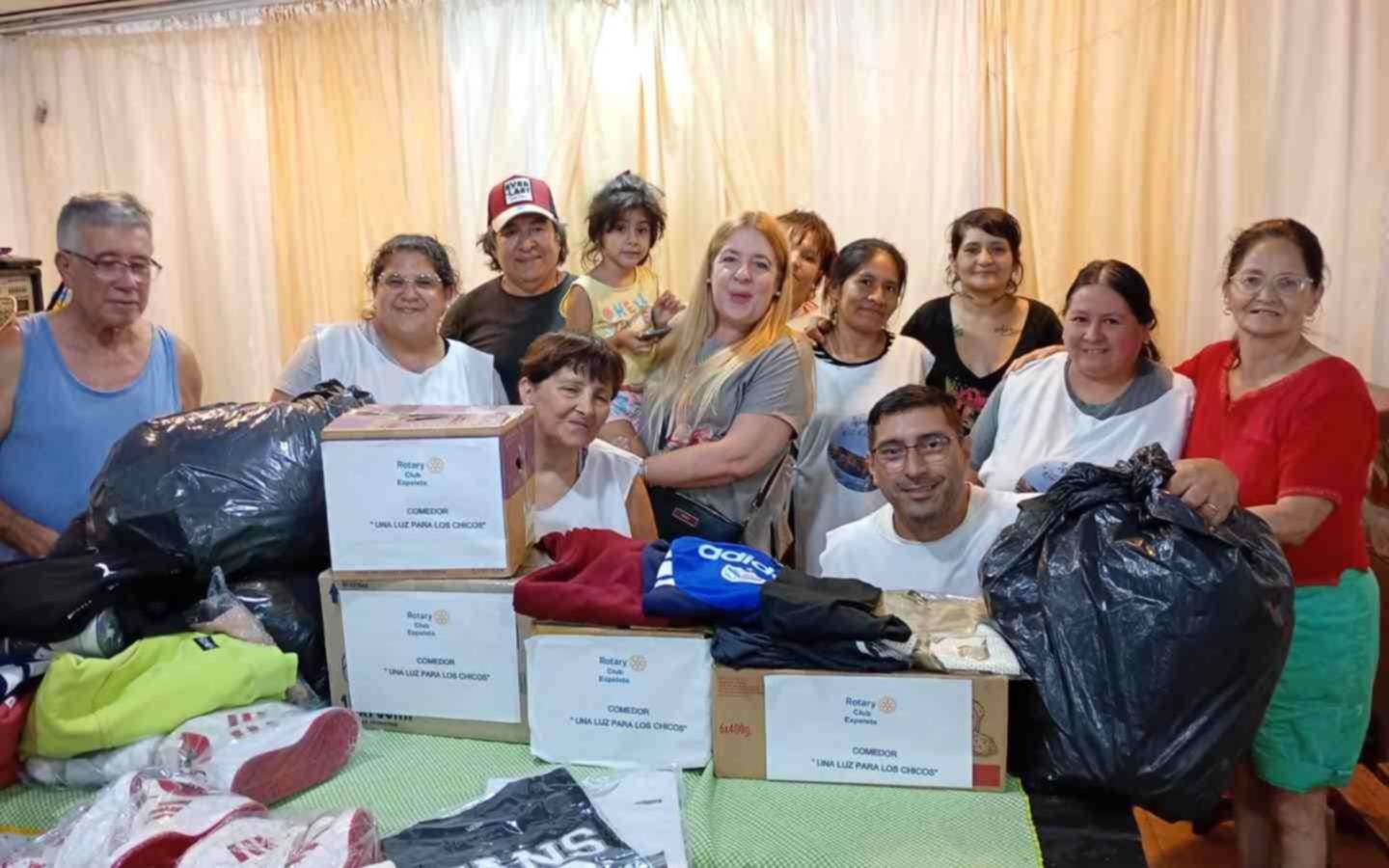 El Rotary Club Ezpeleta concretó este viernes una nueva entrega de alimentos no perecederos junto con indumentaria y calzado a estrenar para el comedor Una Luz Para los Chicos en la localidad de Bernal como parte de su Programa Solidario de acompañamiento comunitario.