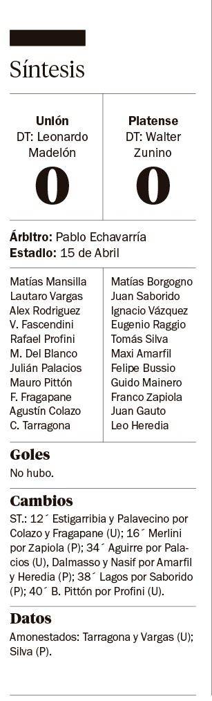 En el Estadio 15 de Abril, Unión y Platense empataron 0-0 en el inicio de la Zona A del Torneo Apertura. Hubo chances para ambos equipos, pero no pudieron concretarlas.