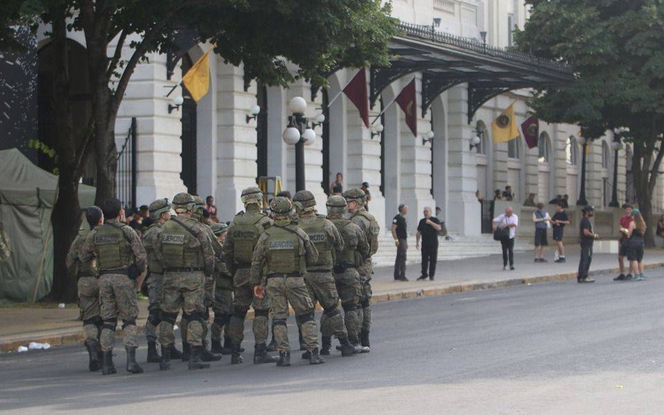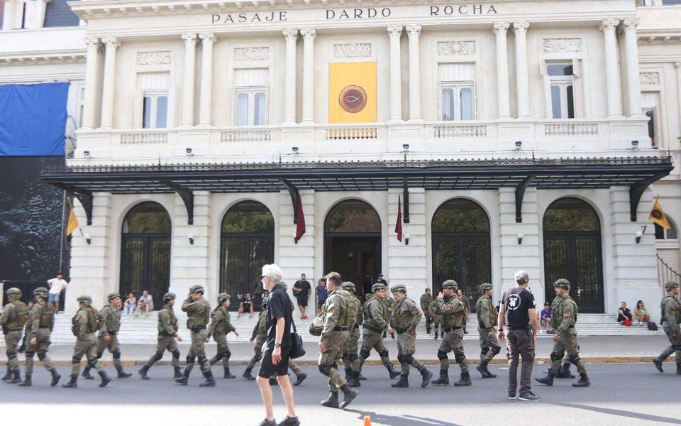 En los estandartes puede leerse la consigna “Gobierno de Unidad. Sudamérica en su destino”, una de las frases centrales que formarán parte de la estética del film y que anticipa el tono de la historia que se desarrollará en escenarios emblemáticos de la ciudad.